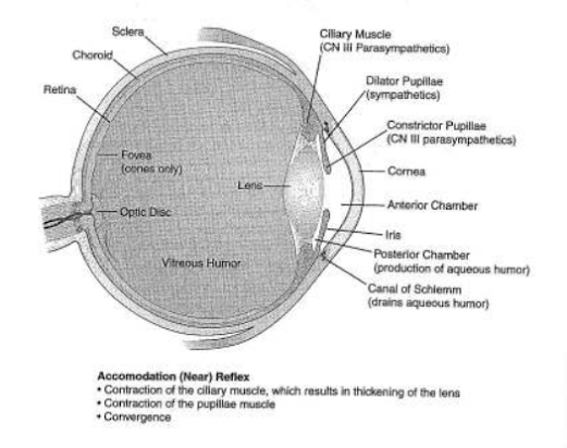 Iris: Muscular structure that gives the eye its color, allows light to pass through.